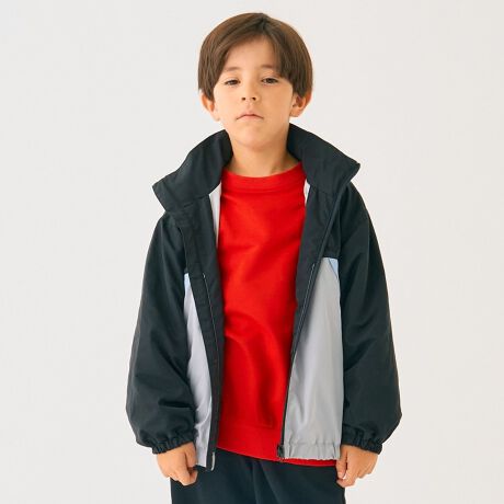 首元までしっかりと閉まるスタンドカラーで、袖口と裾はゴムで絞られたデザインになっています。