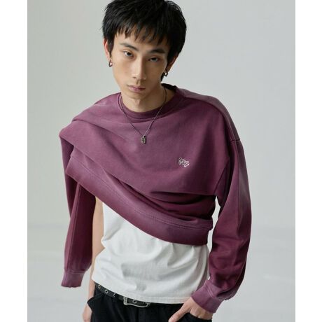 ・日焼けのような加工がこなれた雰囲気のクルーネックスウェット。