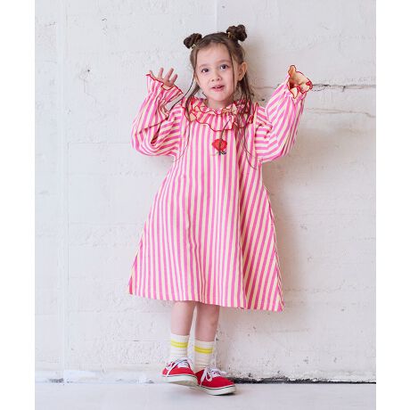 首元に2段フリルをあしらった華やかなデザインのワンピース。