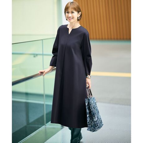 袖のデザインがポイントになった女性らしい印象のワンピース■デザインフォルム感のあるお袖がポイントのカットソーワンピースです。見頃はすっきりとしたシルエットで、裾にかけて動きのあるデザインが加わり、女性らしい柔らかさを引き立てます。きちんと感とリラックス感が両立した万能な1着です。■素材綿とポリエステルの混紡糸を使用したポンチ組織です。編み上がった生機は多数の加工を施すことで、光沢やドレープ性、伸縮性が強化され、ストレッチ性とドレープ性を持つ素材になっています。■同素材アイテムAラインシルエットカットソー(KKWRGW0431)ペプラムシルエットカットソー(KKWRGW0432)