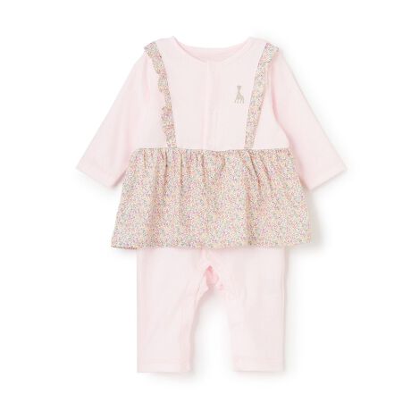 小花柄のジャンパースカートをドッキングしたようなカバーオールです。