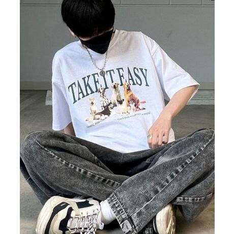 マルイウェブチャネル   /   トップス   /   Tシャツ・カットソー   /   ILL’S ヴィンテージライク イヌ ネコ フロントプリント ビッグシルエット半袖Tシャツ