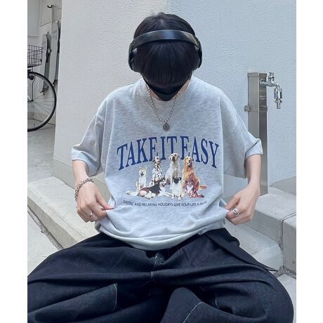 ILL’S ヴィンテージライク イヌ ネコ フロントプリント ビッグシルエット半袖Tシャツ