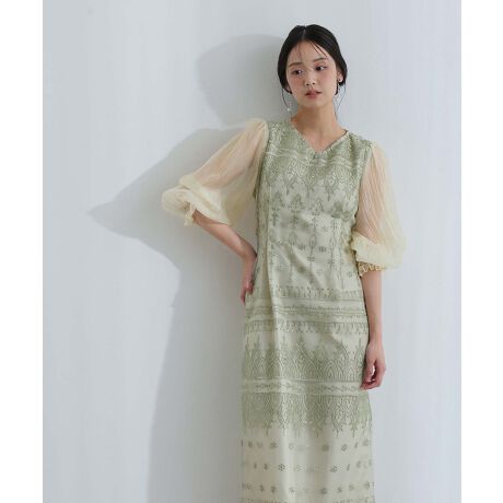 立体的な刺繍レースを使用したオケージョンドレス。