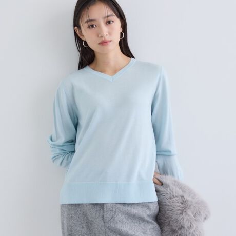 Vネックの長袖デザインは顔まわりをすっきり見せ、オンオフ問わず幅広く活躍します。