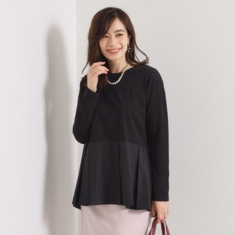 ニットを着る時期にはレイヤードでお使いいただけて、ニットの裾からふわっと除く異素材がおしゃれ。