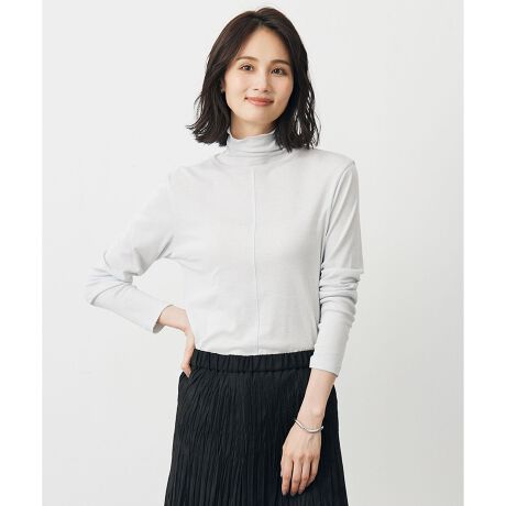 ■デザインレイヤードスタイルに活躍する、ベーシックなカットソー。高めの襟は、くしゅっとたわませても、折り返しても決まり、着こなしに合わせたアレンジが可能です。ピタッとしすぎない、程よくゆとりのあるシルエットで、大人にも取り入れやすいバランスに。ほんのりとした透け感が軽やかさを与え、様々なアイテムのレイヤードスタイルに活躍します。通年で活躍し、1枚プラスするだけでこなれた印象になるシアーインナーです。