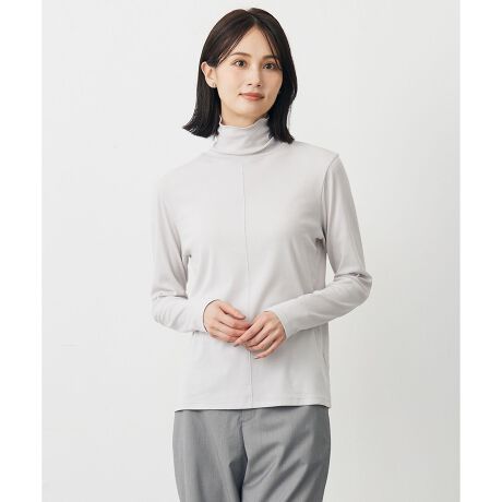 ■デザインレイヤードスタイルに活躍する、ベーシックなカットソー。高めの襟は、くしゅっとたわませても、折り返しても決まり、着こなしに合わせたアレンジが可能です。ピタッとしすぎない、程よくゆとりのあるシルエットで、大人にも取り入れやすいバランスに。ほんのりとした透け感が軽やかさを与え、様々なアイテムのレイヤードスタイルに活躍します。通年で活躍し、1枚プラスするだけでこなれた印象になるシアーインナーです。