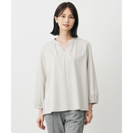 ■デザイン落ち着いたバンドカラーとやや長めの着丈で、大人らしい抜け感のあるカットソー。後ろヨーク下にはプリーツを施し、動く度にやわらかく揺れる表情が、風をはらんで涼し気な着心地を叶える、秋にぴったりなカットソーです。涼しくなってきたら中に重ねてレイヤードを楽しんだりと、着まわせるのも魅力。ヒップまでしっかりと隠れる安心感があり、パンツにもナロースカートにもすっと馴染むシルエットで、オンにもオフにも心地よく寄り添う1着です。