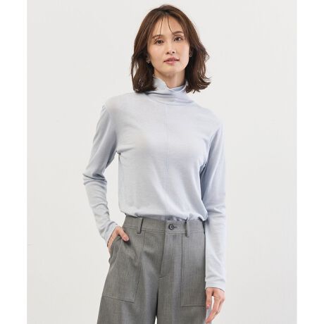 ■デザインレイヤードスタイルに活躍する、ベーシックなカットソー。高めの襟は、くしゅっとたわませても、折り返しても決まり、着こなしに合わせたアレンジが可能です。ピタッとしすぎない、程よくゆとりのあるシルエットで、大人にも取り入れやすいバランスに。ほんのりとした透け感が軽やかさを与え、様々なアイテムのレイヤードスタイルに活躍します。通年で活躍し、1枚プラスするだけでこなれた印象になるシアーインナーです。