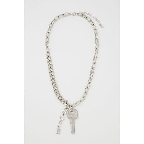 ■ポイントキーモチーフとイニシャルモチーフが組み合わさった個性的なネックレス。キーモチーフの中にはよく見るとロゴが刻印されております。■ディテール太めのチェーンと2種類のモチーフが、存在感を演出してくれます。<イニシャルの意味>HOPE…希望LEAP…飛躍・跳躍■スタイリングカジュアルやストリートなど、トレンディなアイテムとも相性抜群。他の人と差をつけたい方におすすめです。■素材体質によってはかぶれ等を生じる場合がありますので、皮膚に異常を感じた時は、ご使用をお止めいただき、専門医にご相談下さい。変色の可能性がある為、消毒液等の薬品の付着は避けてください。[注意事項]※画像の商品はサンプルです。実際の商品と仕様、加工が若干異なる場合があります。※画像の商品は光の照射や角度、お使いのモニター環境により、実物と色味が異なる場合がございます。※着用、お取り扱いの際は、アテンションタグをご確認ください。