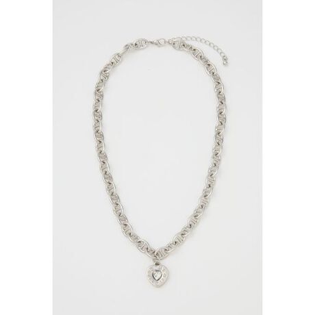 ■ポイントハートチャームにクラシカルな印象のロゴが刻印された存在感抜群のネックレス。太めのチェーンがさらに高級感を出してくれます。■ディテールハートモチーフにストーンの組み合わせ、存在感のある変わったデザインのチェーンネックレス。■スタイリング大ぶりなデザインなので、単体使いでも、お手持ちのチェーンと合わせて重ね使いもおすすめです。420IAY56-1961クラシックハートイヤリングと同シリーズになります。合わせてお使い頂いても可愛いです。■素材体質によってはかぶれ等を生じる場合がありますので、皮膚に異常を感じた時はご使用をお止めいただき専門医にご相談下さい。変色の可能性がある為、消毒液等の薬品の付着は避けてください。[注意事項]※画像の商品はサンプルです。実際の商品と仕様、加工が若干異なる場合があります。※画像の商品は光の照射や角度、お使いのモニター環境により、実物と色味が異なる場合がございます。※着用、お取り扱いの際は、アテンションタグをご確認ください。