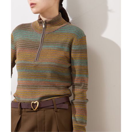 女性らしいフィット感あるリブニットはジップで表情感に変化が出せる1着。