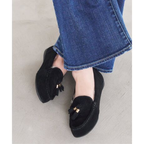 ライニングにふわふわのフェイクファーを使用した、あたたかみのあるタッセルモカシン。