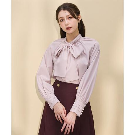 【大人な甘さと肩の力を抜いたきちんと感を演出する、ラグランスリーブボウタイブラウス】【Point】・オンオフ兼用で使える、洒落感ときちんと感のバランスがちょうど良いボウタイブラウス。・ラグランスリーブで肩に縫い目がないため動きやすさ・着脱しやすさ◎・ロングカフスに施されたデザインタックとパールボタンが品の良いな華やかさをプラスします。ケア方法:手洗い可能透け感:なし(オフのみ多少あり)裏地:なし伸縮性:あり光沢感:なし生地の厚さ:中肉