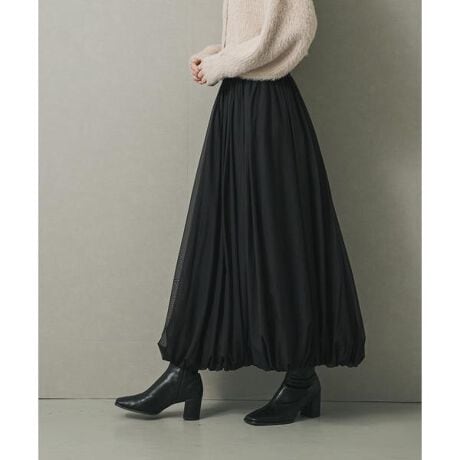 ふんわりと軽やかなチュール素材を使用した、華やかなバルーンスカート。柔らかい裏地との組み合わせで、優しい印象を与えます。ウエストはゴム仕様なので、快適な履き心地。裾に向かってふんわりと広がるバルーンシルエットは、気になる部分をカバーしつつ、すっきりと見せてくれます。シンプルなトップスと合わせるだけで、フェミニンなスタイルが完成します。