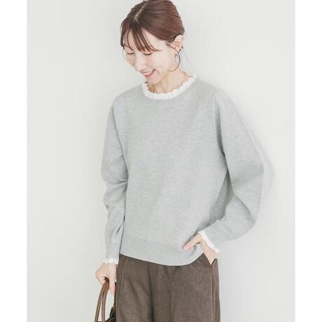 ミラノリブ素材で仕立てたフリルドッキングニットは、程よくフィットするリブ部分とふんわりフリルの組み合わせが上品なアクセントに。甘さを抑えたデザインで、大人のカジュアルスタイルやきれいめコーデに幅広くマッチします。1枚で存在感がありながら、スカートにもパンツにも合わせやすく、着回し力の高い一枚です。