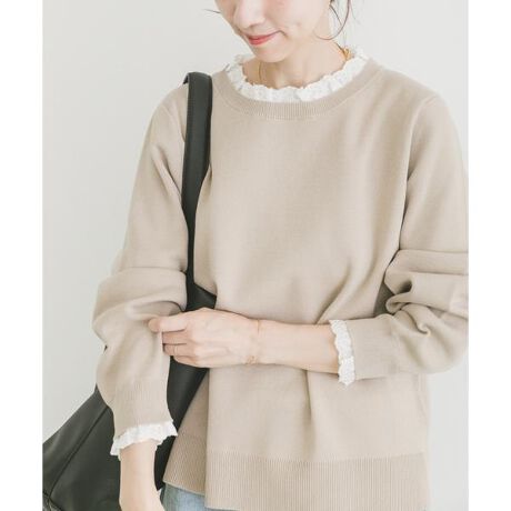 ミラノリブ素材で仕立てたフリルドッキングニットは、程よくフィットするリブ部分とふんわりフリルの組み合わせが上品なアクセントに。甘さを抑えたデザインで、大人のカジュアルスタイルやきれいめコーデに幅広くマッチします。1枚で存在感がありながら、スカートにもパンツにも合わせやすく、着回し力の高い一枚です。