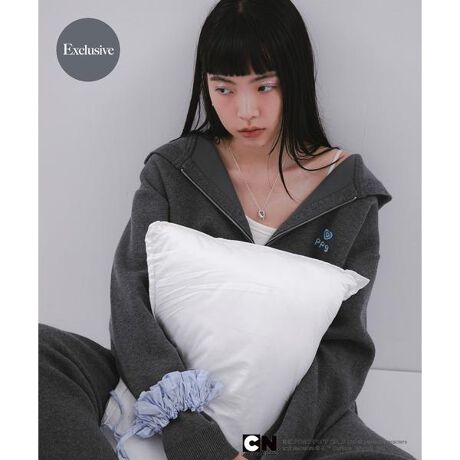 SENSE OF PLACEとPOWERPUFFGIRLSの別注ニットパーカー。程よい肉感のジャガードニット素材で、着心地も抜群です。今年らしいクロップド丈のデザインは、ハイウエストのボトムスと合わせるだけで、スタイルアップが叶います。フードにはパワーパフガールズのアートが施されており、被ったときにもさりげないアクセントに。