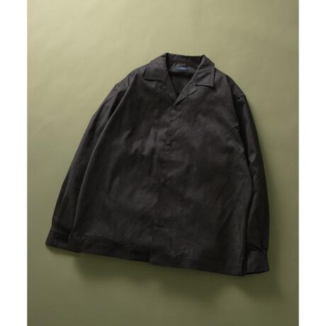 最近注目度が高まっているレザーシャツは、フェイクレザーならではの軽やかさで、羽織るだけでも着心地が快適です。キレイめモードな雰囲気を楽しみたい方にはおすすめの一枚。首元がすっきり開いたオープンカラーで、コーディネートに自然な抜け感と秋らしい温かみをプラスしてくれる一枚です。