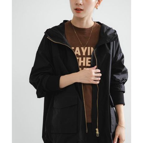 ハリ感のある素材にオーバーサイズシルエット、ゴールドのジップがカジュアルな印象にならずこなれた雰囲気を演出してくれます。