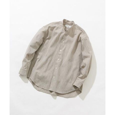 上品なストライプ柄とすっきりとしたバンドカラーが特徴の一枚。