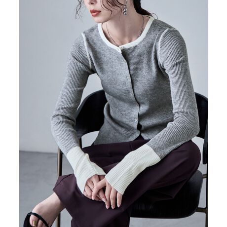 バイカラーニットカーディガン