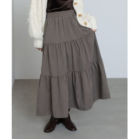 やわらかなピーチスキン素材が季節感を引き立てるティアードスカート。ふんわりとしたシルエットが上品ながらも“大人かわいい”印象を演出します。程よいボリューム感で甘すぎず、落ち着いたトーンのカラー展開が魅力。休日のお出かけはもちろん、きれいめトップスを合わせれば通勤スタイルにもマッチします。