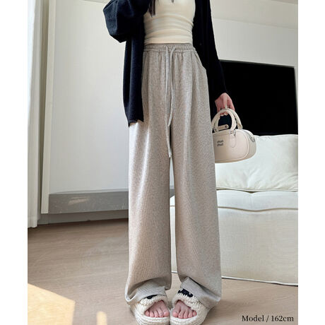 ゆったりとしたワイドシルエットでリラックス感あふれる裏起毛パンツ。