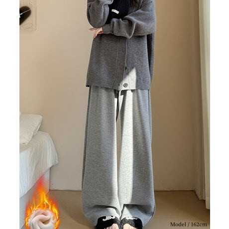 ゆったりとしたワイドシルエットでリラックス感あふれる裏起毛パンツ。