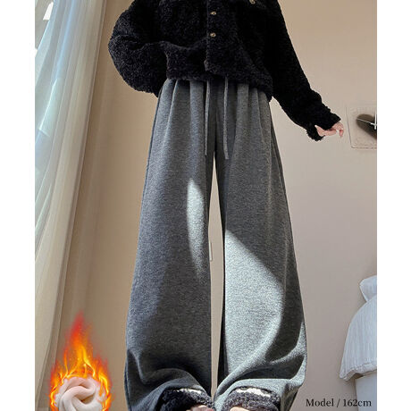 ゆったりとしたワイドシルエットでリラックス感あふれる裏起毛パンツ。