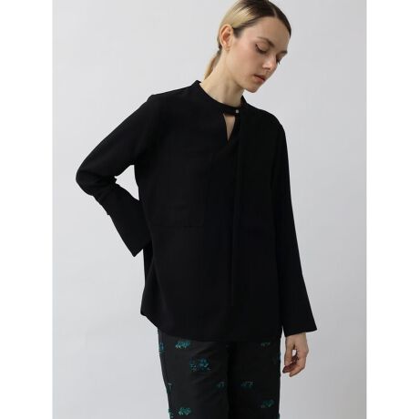 フロントのボウタイデザインとワイドカフスが目を惹くブラウス。首元のデザインと袖口の深いスリットが大人上品な印象を与えてくれます。落ち感の綺麗な生地が美しいドレープを引き出し、セレモニーからお呼ばれ、オフィスまで幅広いライフシーンに寄り添います。