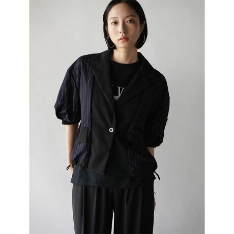 ピンストライプがクラシックな雰囲気にしてくれるバルーンスリーブジャケット。