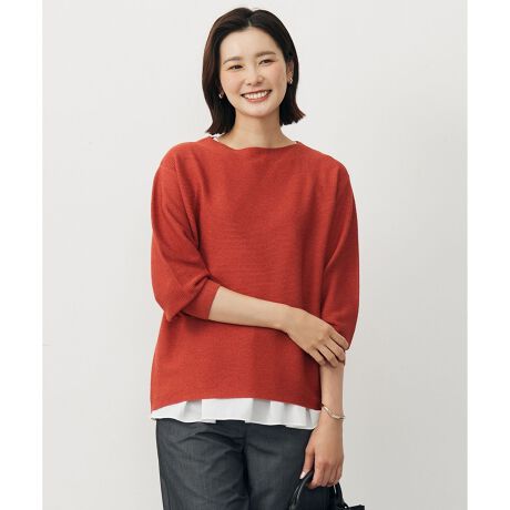 ■デザイン1枚でサマになる、これからの季節に頼れるニット。ガーター編みの程よい凹凸感が、身体のラインをやさしく包み込み、気になる部分をさりげなくカバー。立体感のある編地が、シンプルながらも着こなしに奥行きを与えてくれます。腰まわりが隠れる安心感のある着丈で、すっきりとした細身パンツとも好相性。抜け感ときちんと感をあわせ持つ、大人に嬉しい1着です。