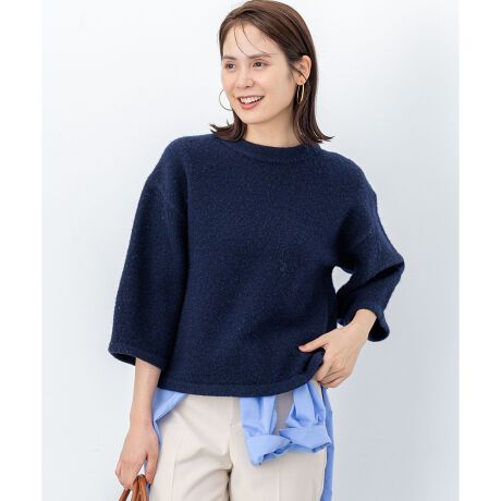 【スタッフコメント】▼身長158cm|着用サイズ2 (通常着用サイズM)ニットの柔らかな素材感に加え丸みのあるフォルムなので一見カジュアルなアイテムですが女性らしいニットです。パンツにはもちろん、長すぎない丈感なのでスカートにも合わせやすい万能さも嬉しいポイントです!