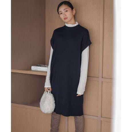 ベストとしてもワンピースとしても着られる、きれいめニットチュニック