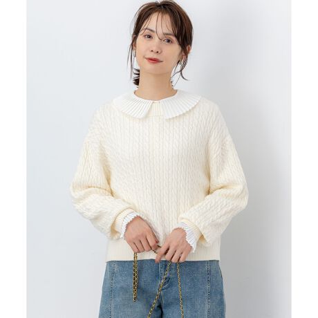 ■デザイン・トレンド感のある二種類の太さのケーブルが交互に編まれたニットプルオーバー。・適度な厚みがありながらも着ぶくれしないシルエットです。・オーセンティックなケーブル柄で程度に少しだけ身体から離れたサイズ感とコンパクト感がイマドキ。・ロングシーズン着ていただけるベーシックカラーと綺麗カラーの展開も魅力。・クリームイエローとチャコールグレーを引き揃えて編むことで杢調見えにした103のライトグレーは今季一押しのカラーです。