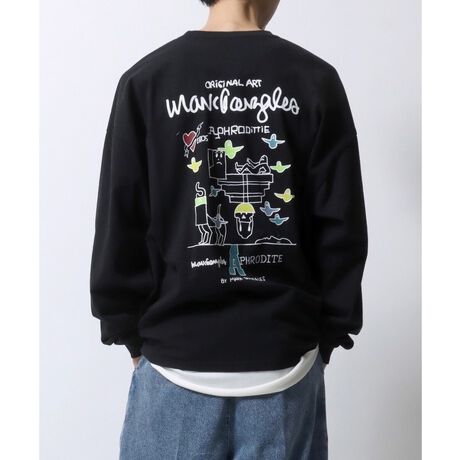 MARK GONZALES ARTWORK COLLECTION/マークゴンザレス 別注 ワンポイント刺繍 バックプリント 袖プリント オーバーサイズ 長袖Tシャツ ロンT レディース メンズ