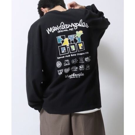 MARK GONZALES ARTWORK COLLECTION/マークゴンザレス 別注 ワンポイント刺繍 バックプリント 袖プリント オーバーサイズ 長袖Tシャツ ロンT レディース メンズ