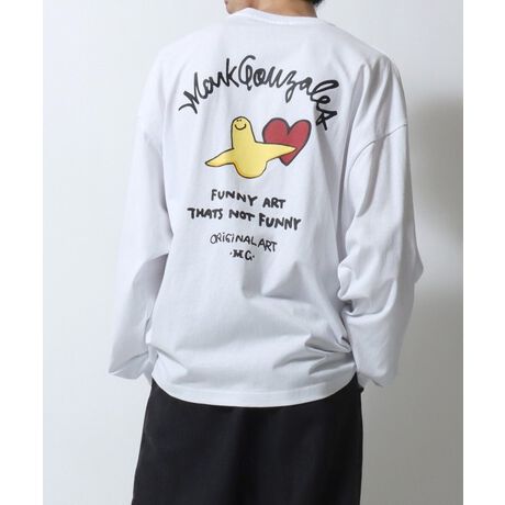 MARK GONZALES ARTWORK COLLECTION/マークゴンザレス 別注 ワンポイント刺繍 バックプリント 袖プリント オーバーサイズ 長袖Tシャツ ロンT レディース メンズ