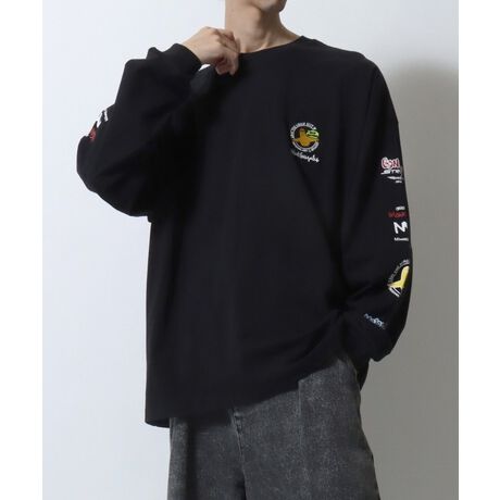 MARK GONZALES ARTWORK COLLECTION/マークゴンザレス 別注 ワンポイント刺繍 バックプリント 袖プリント オーバーサイズ 長袖Tシャツ ロンT レディース メンズ