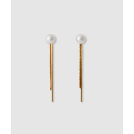 繊細なチェーンに上品なグラスパールを組み合わせたパールチェーンピアス。