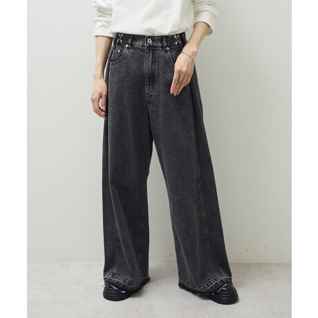 ヴィンテージ感ある色合いがトレンドライクなワイドパンツ。レッグラインを拾わないリラクシーな穿き心地がタウンユースに最適な一本です。メタルフックパーツをウエストにプラスし、調節アレンジができるのも嬉しいポイント。着脱しやすいバックウエストゴム仕様や裾周りの切りっぱなしデザインにも注目です。透け感[なし]