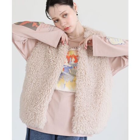 ふっくらとした毛並みで触り心地も優しい天然調シープファーで仕立てたデザインベスト。トップにフックを付けた着脱しやすい仕様で、いつものスタイリングを格上げしてくれるシーズナルな1着です。ゆとりあるフォルムと長めのロング丈で着回しやすく、腰回りまでしっかりと暖かいのも嬉しいポイント。シンプルながらも存在感たっぷりに演出してくれるおすすめのアイテムです。透け感[なし]