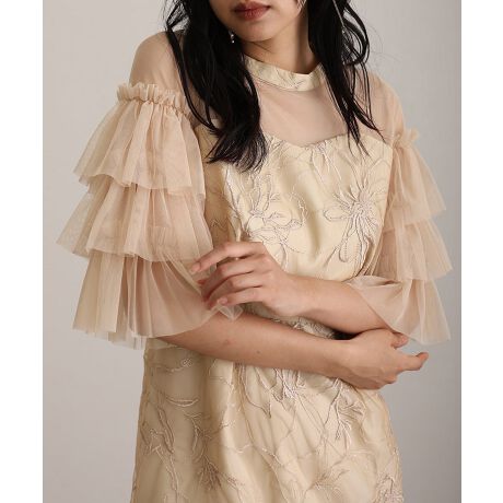 ■ティアードスリーブ×フラワー刺繍
