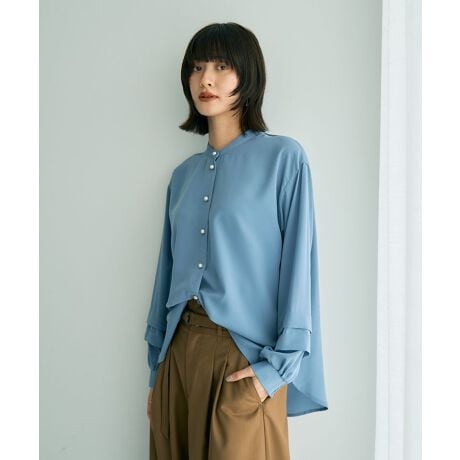 とろみのある滑らかなジョーゼット生地にバンドカラーデザインがすっきりとした印象をプラスします。