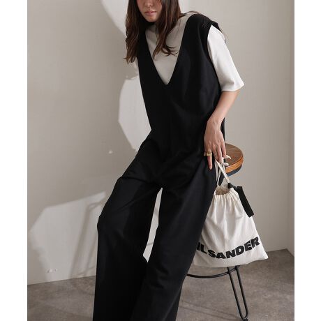 ミニ裏毛ディープVネックコットンジャンプスーツ