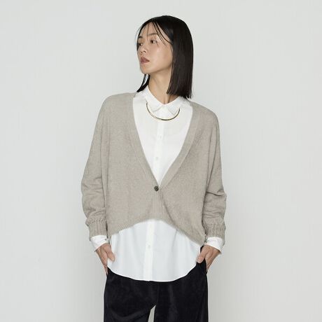 ベルベットのような美しい光沢と思わず触れたくなる、ふんわりもちっとした手触りが魅力のマシュマロニットショートカーディガンです。