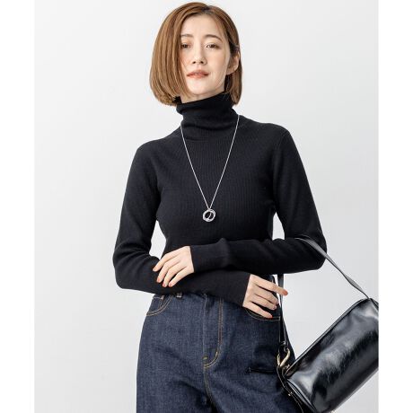 ウール100%のシンプルで着回しのきくリブタートルネックプルオーバーです。後ろの襟ぐりに入ったスリットがさりげないアクセントになっています。袖丈はやや長めなので、シャツやニットと重ね着をして袖口を覗かせるレイヤードスタイルもおすすめです。一枚で着るのはもちろん、インナーとしても活躍するので、様々なコーディネートを楽しめます。カラーは、すっきりとした印象を叶えるブラック(#005)、レイヤードに重宝するホワイト(#001)、抜け感のあるグレー(#004)、絶妙なカラーが洒落感をプラスするベージュ(#033)、女性らしい雰囲気のWEB限定カラーのピンク(#012)の5色展開です。