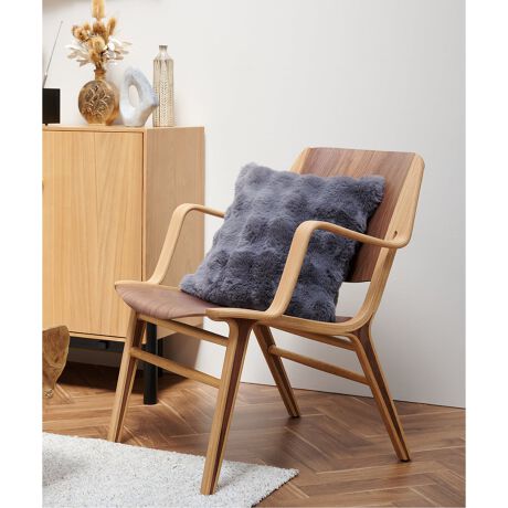 ファーの長さで凹凸のある表情に仕立ています。ベージュとグレーのニュートラルなカラーは、上品にインテリアに取り入れられます。